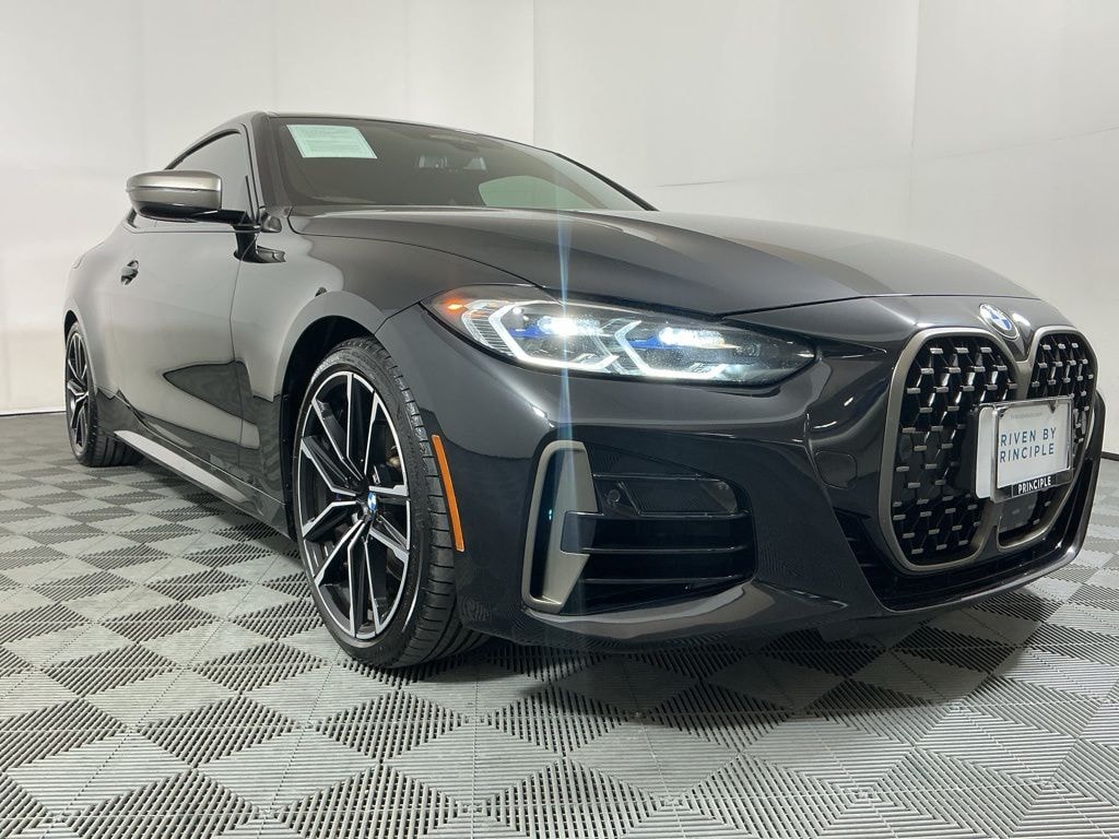Certified. 2022 BMW 4 Series M440i CARFAX One-Owner. Black Sapphire Metallic New Price! Connected Package Pro, Driving Assistance Professional Package, Extended Traffic Jam Assistant, Gesture Control, Head-Up Display, Heated Front Seats, Heated Steering Wheel, Navigation, Navigation System, Premium Package.