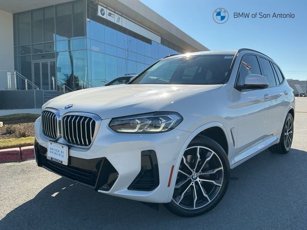 Certified. 2023 BMW X3 sDrive30i CARFAX One-Owner. Mineral White Metallic New Price! 8-Speed Automatic Sport, Active Park Distance Control, Aerodynamic Kit, Connected Package Pro, Driver Lumbar Support, Heated Front Seats, Heated Steering Wheel, Live Cockpit Pro w/Navigation, M Sport Package, M Sport Package (337), M Steering Wheel, Navigation, Navigation System, Panoramic Moonroof, Parking Assistance Package, Parking Assistant Plus, Premium Package, Rear-View Camera, Roof Rails in High-Gloss Shadowline, Shadowline Exterior Trim, Smoke Grey Aluminum Rhombicle Trim, Surround View w/3D View, Wheels: 19" x 7.5" M Y-Spoke Bi-Color (Style 887M), Without Exterior Lines Designation.