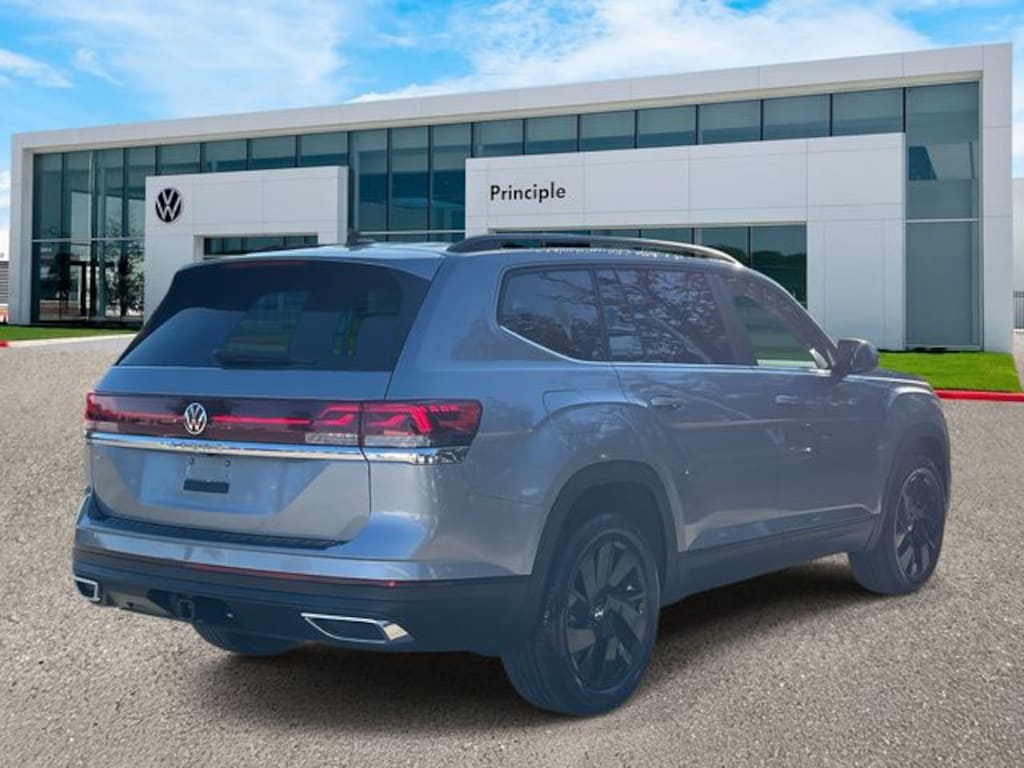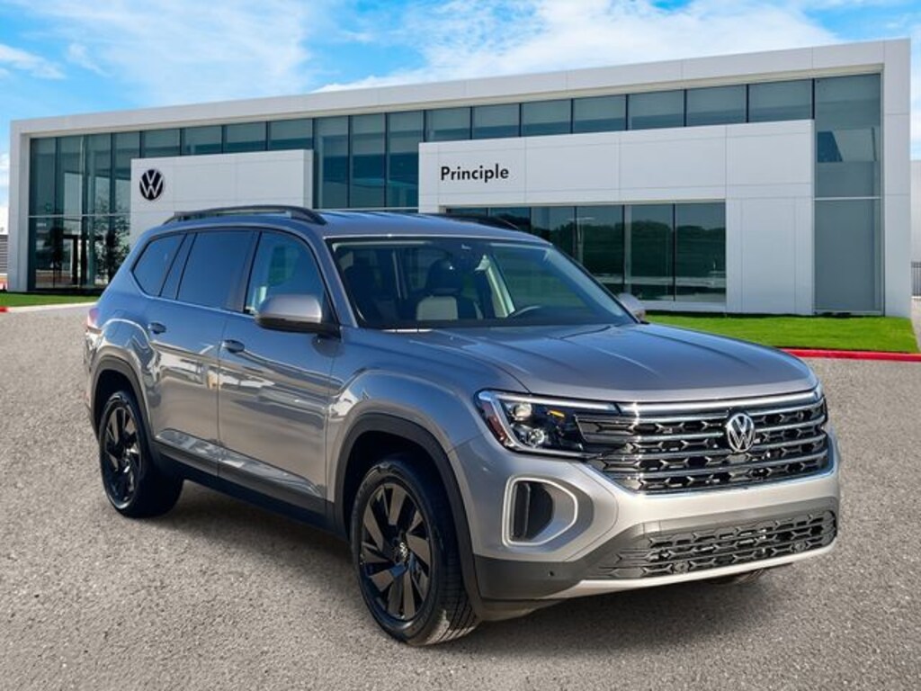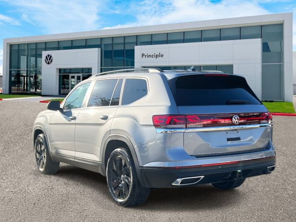 Atlas 2.0T SE w/Technology, 4D Sport Utility, 2.0L TSI, 8-Speed Automatic with Tiptronic, FWD, silver mist metallic, 2nd-Row Dual Captain's Chairs, 3rd row seats: split-bench, 4-Wheel Disc Brakes, ABS brakes, AM/FM radio: SiriusXM with 360L, Auto High-beam Headlights, Auto-dimming Rear-View mirror, Automatic temperature control, Black Bumperdillo Rear Bumper Protection Plate, Black Wheel Package, Brake assist, Bumpers: body-color, Compass, Delay-off headlights, Electronic Stability Control, Emergency communication system: VW Car-Net Safe & Secure 5-year, Exterior Parking Camera Rear, Four wheel independent suspension, Front dual zone A/C, Front fog lights, Fully automatic headlights, Garage door transmitter: HomeLink, Heated & Actively Ventilated Front Bucket Seats, Heated front seats, Heated steering wheel, Heavy Duty Trunk Liner w/VW CarGo Blocks, Illuminated entry, Outside temperature display, Overhead console, Power driver seat, Power Liftgate, Radio: MIB3 Composition Media, Rain sensing wipers, Rear air conditioning, Remote keyless entry, Rubber Mats Kit (2-Row), Security system, Speed control, Speed-sensing steering, Steering wheel mounted audio controls, Telescoping steering wheel, Tilt steering wheel, Traction control, Variably intermittent wipers, Ventilated front seats, Volkswagen Logo Puddle Lights, VW Care, Wheels: 20" Multi-Spoke Black Painted Alloy.