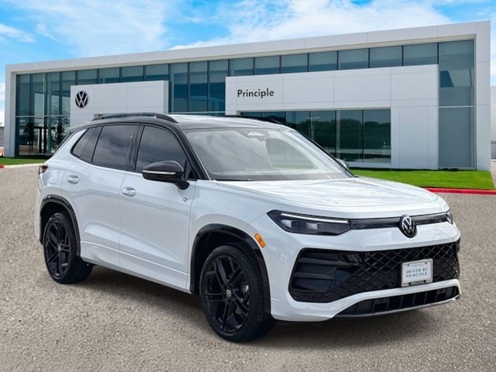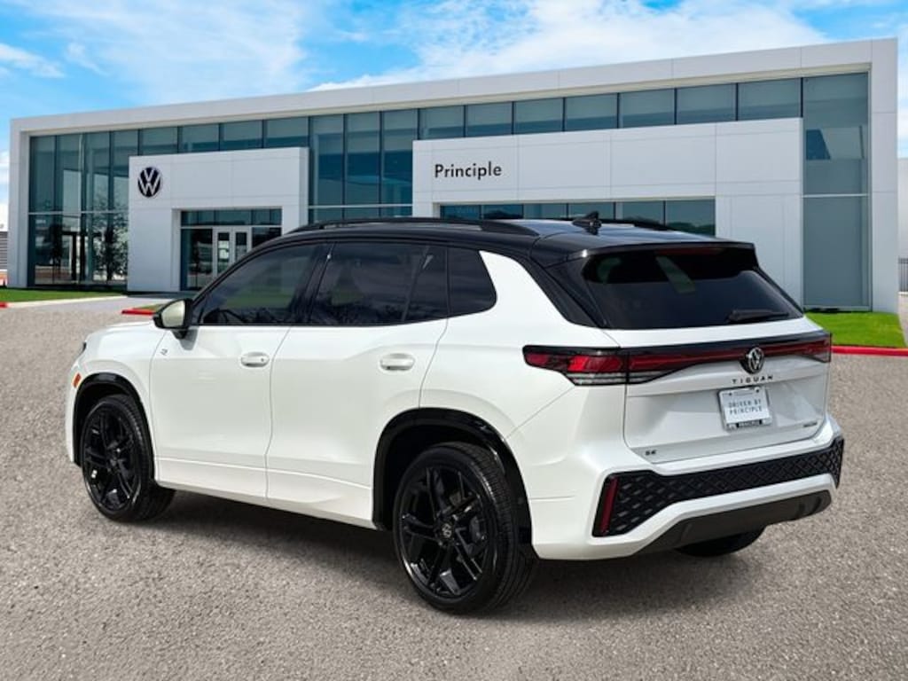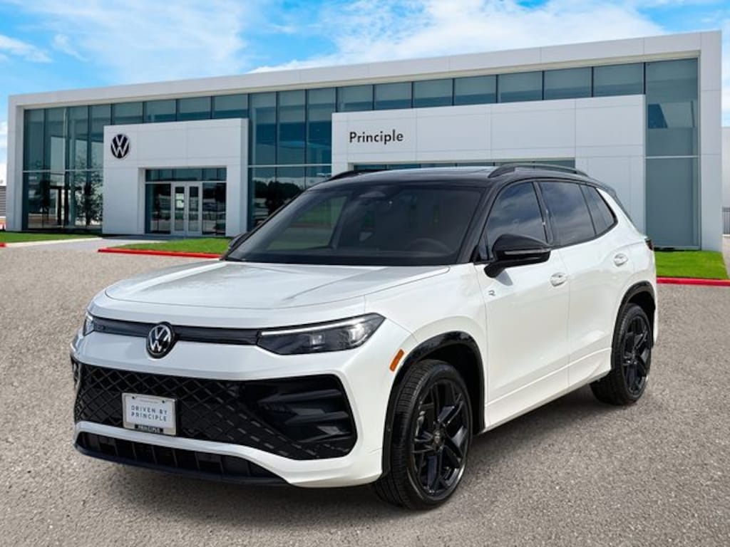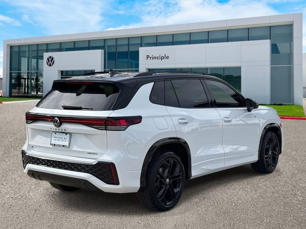 Tiguan 2.0T SE R-Line Black, 4D Sport Utility, 2.0L TSI DOHC, 8-Speed Automatic, FWD, Opal White with Deep Black Roof, 4-Wheel Disc Brakes, 7 Speakers, ABS brakes, AM/FM radio: SiriusXM with 360L, Auto High-beam Headlights, Auto-Dimming Rearview Mirror with HomeLink, Automatic temperature control, Brake assist, Bumpers: body-color, Compass, Delay-off headlights, Electronic Stability Control, Exterior Parking Camera Rear, Four wheel independent suspension, Front Bucket Seats, Front dual zone A/C, Fully automatic headlights, Heads-Up Display, Heavy Duty Trunk Liner with VW CarGo Blocks, Illuminated entry, Leather Shift Knob, Leather steering wheel, Outside temperature display, Overhead console, Perforated V-Tex Leatherette Seating Surfaces, Power driver seat, Power Liftgate, Power moonroof: Panoramic, Radio: MIB4 Composition Media Touchscreen with AM/FM, Rain sensing wipers, Remote keyless entry, Rubber Monster Mats Kit (set of 4), Security system, Speed control, Speed-sensing steering, Sport steering wheel, Steering wheel mounted audio controls, Tachometer, Telescoping steering wheel, Tilt steering wheel, Traction control, Trip computer, Turn signal indicator mirrors, Variably intermittent wipers, VW Care, Wheels: 20" Black Painted Alloy.