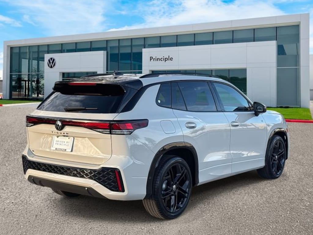 Tiguan 2.0T SE R-Line Black, 4D Sport Utility, 2.0L TSI DOHC, 8-Speed Automatic, FWD, sandstone, 4-Wheel Disc Brakes, ABS brakes, AM/FM radio: SiriusXM with 360L, Auto High-beam Headlights, Auto-Dimming Rearview Mirror with HomeLink, Automatic temperature control, Brake assist, Bumpers: body-color, Compass, Delay-off headlights, Electronic Stability Control, Emergency communication system, Exterior Parking Camera Rear, Four wheel independent suspension, Front Bucket Seats, Front dual zone A/C, Fully automatic headlights, Heads-Up Display, Heated Front Seats, Heavy Duty Trunk Liner with VW CarGo Blocks, Illuminated entry, Leather Shift Knob, Leather steering wheel, Outside temperature display, Overhead console, Perforated V-Tex Leatherette Seating Surfaces, Power driver seat, Power Liftgate, Power moonroof: Panoramic, Radio: MIB4 Composition Media Touchscreen with AM/FM, Rain sensing wipers, Remote keyless entry, Rubber Monster Mats Kit (set of 4), Security system, Speed control, Speed-sensing steering, Sport steering wheel, Steering wheel mounted audio controls, Tachometer, Telescoping steering wheel, Tilt steering wheel, Traction control, Trip computer, Variably intermittent wipers, VW Care, Wheels: 20" Black Painted Alloy.